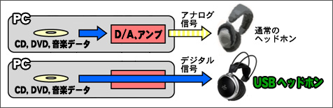 パソコンでCDやDVDの音が聴けるのは、内部にDAコンバーターやアンプがあるためである。ヘッドホンにはアナログで信号が送られてくるわけだ。それをデジタルにしてしまったらどうか。ヘッドフォン自体にDAコンバーターやアンプを内蔵させ、そこまではデジタル信号のまま持ってくる。それならパソコン内部のノイズからも解放されるし、アンプの質も整えることができる。ただそれをやったところでどれだけ効果があるのかはやってみなければわからないのも確かだ。