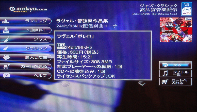 本機から同サイトにアクセスし、オクタヴィアレコードやナクソスの高音質音源を中心に試聴してみる。高圧縮の配信サイトに比べるとデータ量が多いとはいえ、ダウンロードに要する時間は僅かで、ライセンスの発行もスムーズに行われた。