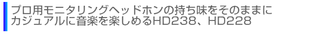スタジオでよく使うのは「HD600」などだが、ゼンハイザーのヘッドホンは総じてボリュームが小さめだから、私のように声がデカく、爆音でモニターしたい、というシンガーの「録り」には向かない。そのかわり、全体の楽器のバランスをシビアにチェックしなければならないミックス・ダウンのときには、音の粒立ちがいいゼンハイザーが大活躍してくれるのである。 新製品のダイナミックヘッドホン「HD238」「HD228」は非常にリーズナブルな価格だが、「小さい音でもバランスよく聴け、ボリュームを上げていってもそのバランスが崩れない」というゼンハイザーのヘッドホンの持ち味は、まったく失われていない。