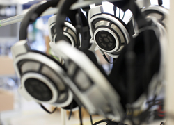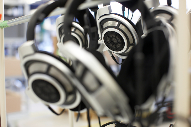 さて、今回テーマとなっているHD800。元となるアイディアは、HD650が誕生する以前の1994年に誕生し、2002年に具体的なプロダクトとしてスタートしたという。本機の最も大きな特徴は、56mmというヘッドホンでは最大級となるダイヤフラムを採用した点にあるだろう。 ゼンハイザーの新しいフラッグシップモデルとなるHD800は、全てドイツ本社内にある工場にて生産されている。一台あたり45分程度、一日に約50台が組み立てられ、予定台数である5000台は1年かけてじっくり生産される。オーディオファイルのみならずインダストリアルデザイン愛好家にとって“メイド・イン・ジャーマニー”の刻印は、ひとつのプレミアムとして十分な価値があるのではないだろうか。 もちろん、ここでは多くのマイクロホンも製造されているが、HD800の製造ラインはハンドメイドで行われている。最新鋭の設備と熟練した作業員による緻密な手作業によって生み出されるという点にも、ゼンハイザーの強いこだわりがうかがえる。ちなみにこの工場で働く人々は、フレックスタイムを採用しており、その内の約80%が朝の5時から働き始めるという。“早起きは三文の徳”ということわざがあるが、この言葉はゼンハイザー製品のクオリティにも反映されているといってもいいのかもしれない。