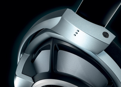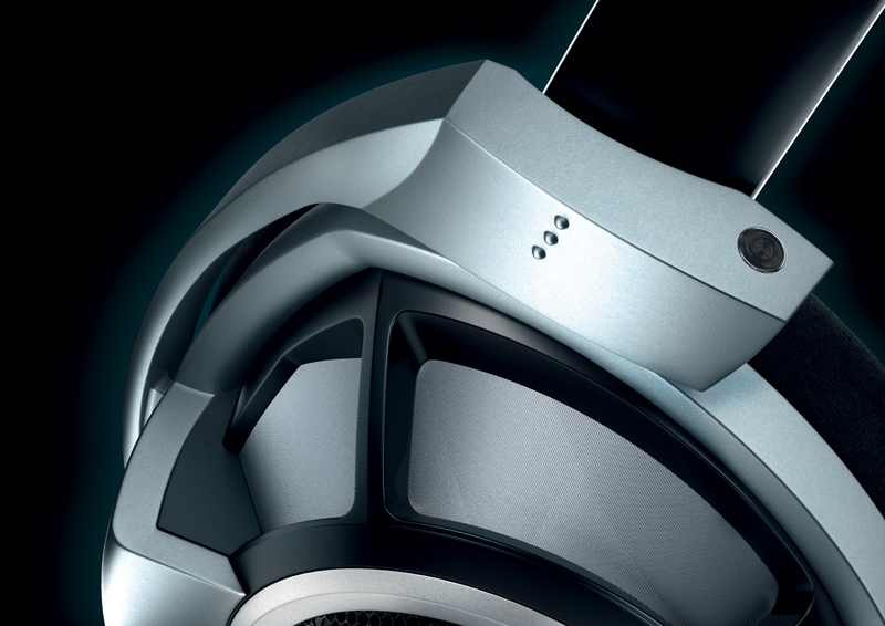また、イヤーカップデザインにおいても自然な空間再生を行うため、耳に対してわずかに角度を付けた構造とした。ケーブルはハウジングから着脱可能な独自のコネクター方式を採用。テフロン絶縁が施され、プラグは本機専用の金メッキ仕様品を用いている。そしてフレーム材の中心となる部分にはチタン級の強靭な強度を持つ「レオナ」という特殊なプラスチック素材を採用。軽量で振動吸収率も高く、固有の音色も少ないため、クリアなサウンド作りに大きく貢献している。 さらにオープン構造に大きな影響を与えるメッシュ部には編み目の細やかなステンレススチールが用いられる。このメッシュはプラスチック製フレームと一体の構造だが、こちらも異種素材をひとつにまとめるために大変な苦労が伴ったとのことだ。イヤーパッドには手織りのマイクロファイバー布を採用し、快適な装着感を実現。新しいデザインとなったヘッドバンドのトップ部にはシリアルナンバーが刻まれている。