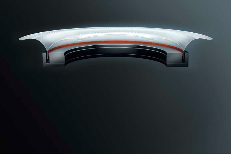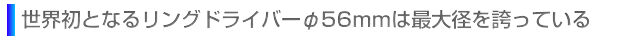 長い歳月をかけて辿り着いた最高の振動板「リングドライバー」は、特許申請中でもある世界初となるリング形状の振動板を採用。口径もφ56mmというヘッドホンとしては最大径を誇っている。これまでのハイエンド機HD650に搭載されていたドライバー径がφ38mmであることを考えると、いかに大きな振動板であるかが分かる。 このリングドライバーの振動板完成までの道のりは困難を極めたという。単に口径が大きいという従来からの振動板の場合、有利なのは低域特性のみで、高域に関しては固有振動が原因で余計な振動が発生し、音を濁す要因になってしまう。リング状とすることで、最適な特性が得られる振動エリアを均一に展開することができ、レスポンスも早く、エネルギー密度の濃い再生が可能となった。