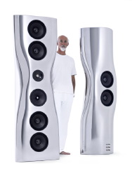キャビネットは背面を絞ったティアードロップ型で、側面は緩くカーブしている。内部定在波を解消するとともに、構造全体に強度を与え、不要共振を排除する形状である。このキャビネットとユニットを最適なバランスで結合することができるのも、一貫した自社生産が可能なKEFの優位性といっていい。