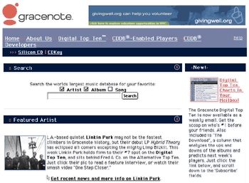 CDDBは「Compact Disk Data Base」の略称。音楽CDのアルバム名、アーティスト名、曲名などが検索できるCDのデータベースだ。このレポートの文中に紹介したのは、CDDBのWebページのこと。ここでも検索サービスが提供されている。 http://www.CDDB.com/index.html |