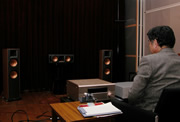 | ヤマハ(株)の視聴室にてKLIPSCHのスピーカーをじっくりと聴きこむ林氏。 |