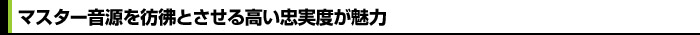 アコースティック・ギターは歯切れよく腰があり、ピアノは艶やかで明解なタッチ、ベースは明瞭なフォーカスで躍動感に溢れ、ドラムスは粒立ちよく音像が空間に浮かび上がる立体感も良好だ。ボーカルは生々しく肉声的でリアルな爽快感に特徴を見せ、全体にマスター音源を彷彿とさせる忠実度の高さがポイントと言えるだろう。オリジナル楽器でのヴァイオリン協奏曲では、艶やかな高弦と量感に満ちた低域の響きを対比させた瑞々しいオーケストラ・イメージ、その前方に伸びやかな独奏ヴァイオリンがスッキリと浮かび上がり収録されたホール・アコースティックが見事に映しだされる。交響曲では、雄大なオーケストラ・イメージが鮮やかに眼前に構築され、パート感の分離よく細部も緻密に描写。 本機の魅力であるヘッドホン端子での再生音は、ディスクリート専用回路構成ならではのバランスと高品位な音色・音質で、何よりもスピーカー・システムでの試聴バランスに沿っている点が高く評価できる。全てのソースは独自の“CrystalLockTM”モードでの試聴だが、ジッター低減効果による聴感的なS/Nのよさが印象的である。 |