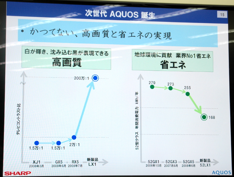 成熟したCCFLを使いながら、これまでの技術改良の延長線上で、消費電力を30%以上削減するのは困難だ。ここにも、LEDとUV2Aのコンビネーションによるブレークスルーがあったということだ。繰り返しになるが、現実的なコストで画期的な省エネ性能を実現できたのは、LEDと液晶パネルを自ら作り、全体を俯瞰できるシャープならではのことと言えよう。