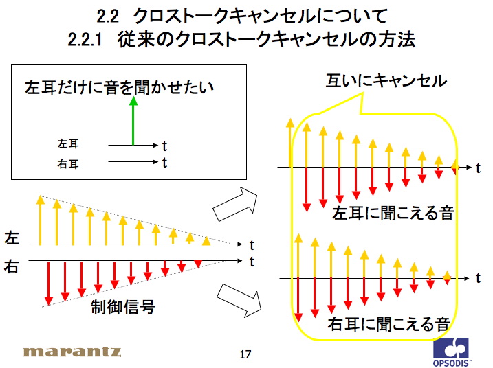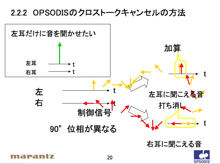 | OPSODISも含めて、反射を利用しないタイプのフロントサラウンド技術の中核的な手法はクロストークキャンセルというものだ。