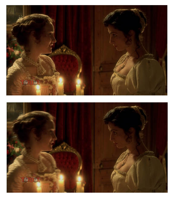HD技術でプログレッシブ変換を最適化処理すると、従来のアプローチ(下写真)より輪郭が出て、解像感も上がる(上写真) |