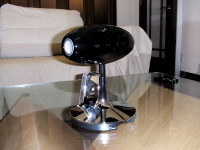 頭の部分はピアノのようなぴかぴかの黒、スタンドの部分はやはりピアノの黒とクロームのツートン、そしてiPodを立てるソケットがスタンドの正面に。ソケットにiPodを立てて、ぐるっと周りから見てみると、あっ、このクロームは私のCLASSICの裏側のクロームといっしょなんだ。確かにこれを見たら紛れもなく「made