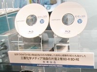 ▲同社が得意とする2層化技術を活かした、片面2層タイプのBD-R/BD-REを参考出展。現在製品化されている無機材料をベースに開発が行われている(写真は拡大可) |