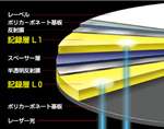 DVD-Rに採用。製造方法には実績のある2P転写法を用いることで、L0/L1両方の記録層で高い記録特性を実現している
