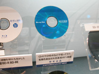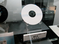 | ▲有機色素技術をBD-Rに応用したディスクのサンプル。記録膜にDVDなどと同じ有機色素を用いることで、ディスク製造に既存のDVD製造ラインが活せる。(写真は拡大可) |