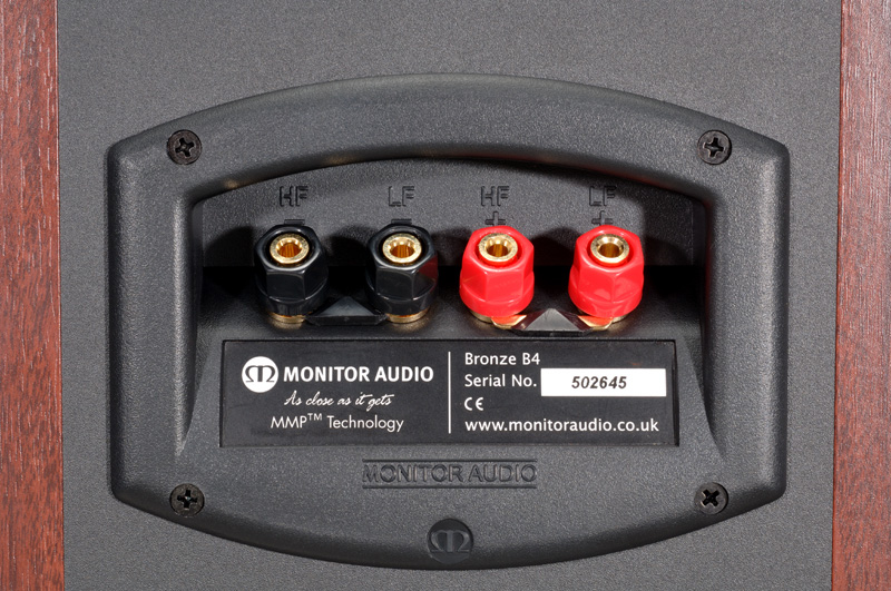 端子部。バナナプラグ、バイワイヤリングに対応している(写真はB4) |