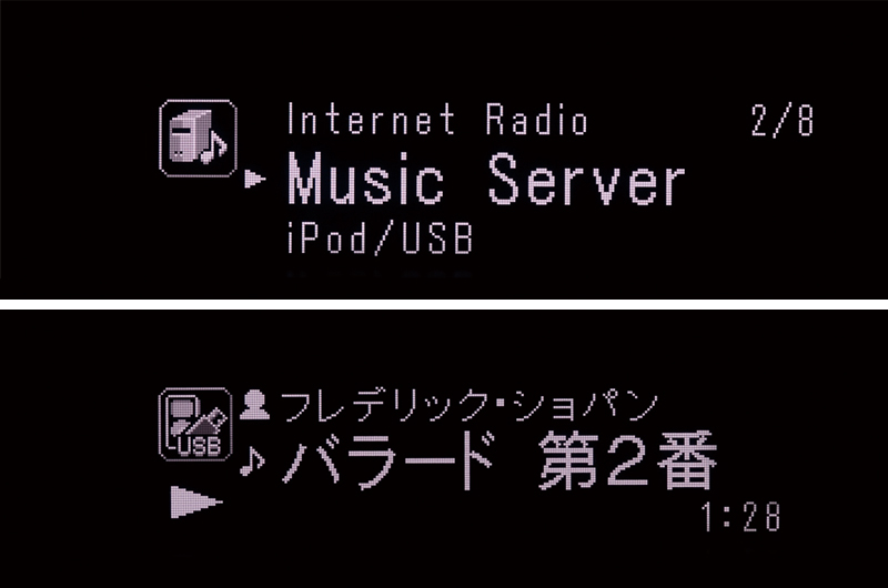| 大型な表示部には視認性に優れ、日本語表示も可能な有機ELディスプレイを装備。3行の表示が可能で、本体のみでもサーバー内のライブラリーのブラウズやインターネットラジオ局の検索が快適に行える。ディスプレイの明るさは4段階で設定でき、オフにすることも可能となっている | NA7004にはブラックバージョンも用意され、所有のシステムにより色を選ぶことができるのも嬉しい |