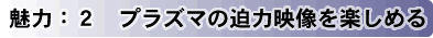 50インチのハイビジョンプラズマに思わず興奮! ハイビジョンを見るならプラズマだろう。40インチあたりからグングン画面サイズが大きくなって見えるものだが、そこに1125iの倍密走査が描くBSデジタルのオンエアーが映しだされたら別格だ。 このeカラーコレクションに使われているのは、NECのプラズマX50インチタイプ。プレゼンテーションでも威力を発揮する、高精細104万画素のハイビジョンプラズマデバイスなのである。 液晶テレビなどとはちょっと比較にならない。これがどれだけ凄いかいうと、ハイビジョンがまさにハイビジョンらしく見える。映像じたいがすこぶる雄大かつ透明緻密であり、また色の微粒子感が抜群なのだ。地球の空撮シーンは、ヌケるようなブルーの海と雲のディテールにカンド〜。穂高、上高地など、いながらにして早春の山々の澄んだ空気感、遠近感まで感じ取れるから嬉しい。 映画ではDVDの「マトリックス」を視聴。キレのいいシャッキっとしたデジタル高画質にハマり、キアヌののけぞりシーンに「おっと!」……こちらまで身をよじってしまった。プラズマ大画面ならでは至福の瞬間である。