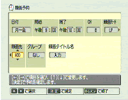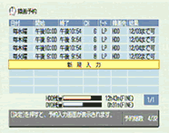 | 録画予約画面から、ひとつずつ予約。まず予約状態が一覧表示され(左写真)、新規入力の画面に進む(右写真)。リモコンで簡単に入力できる。 |