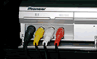 これらのケーブルDVDレコーダーの前面にある入力端子へつなぐ(右写真)。