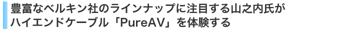 今年の夏に、パイオニアマーケティング(株)から発表された米ベルキン社の「PureAV」シリーズは、発売以来そのクオリティの高さが評価され、急速に日本国内のユーザーを増やしている。今回の特集企画では、PureAVの魅力を体験したオーディオ・ビジュアル評論家たちによる、PureAVシリーズの一歩進んだ使いこなしのテクニックをお届けして行く。PureAVシリーズのラインナップ、および画質・音質の評価レポートについては、Phile-webの「PureAV特集ページ」もぜひご覧いただきたい。 |