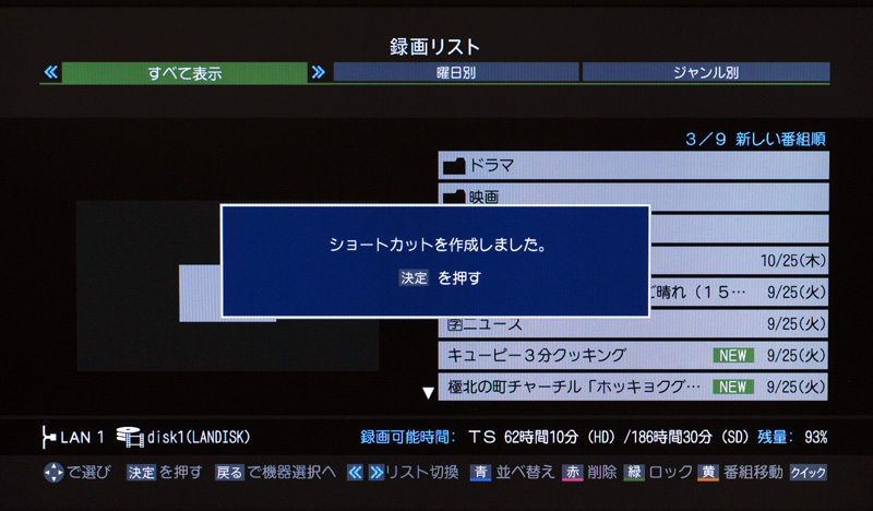【STEP3】番組のジャンル分けや、家族で“REGZA”を使う際にもフォルダ管理の機能はとても便利なはずだ(写真は拡大します) |