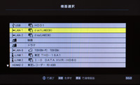 | 録画機器の選択画面。LANやUSBで接続された外付HDDや、i.Link接続のレコーダー、ホームネットワーク上のレコーダーなども一覧に表示される(写真は拡大します) |