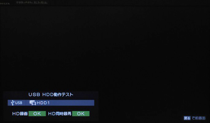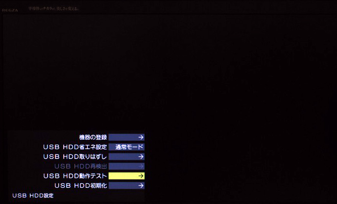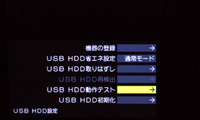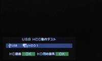 HDDに録画を行う前に正常な動作が可能かどうかをチェックすることができる。はじめにUSB HDD設定のメニューから「USB