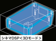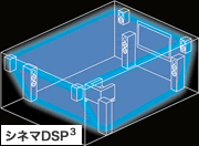 | 進化を続けるシネマDSPの立体音場。「高さ」「奥行」の再現力が最大の魅力である<3Dモード>。側方から後方にかけての音の移動感や距離感をよりリアルに感じられるシネマDSP3。創出する音場形状はDSP3と同様ながら、音のデータ密度と反射音数がより高いHD3。 |