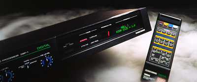 | ヤマハ「DSP-1」(1986年発売)。デジタル信号処理による世界初の音場創成技術を搭載したデジタルサウンドフィールドプロセッサー。 |