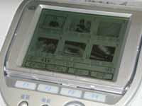 液晶はモノクロだが、一度に6枚の画像が表示され、その中から選んだ画像をプリントアウトしたりファックス送信したりする。プリンター専用機と比べると速度はかなり遅いが、16コマ・シールプリントなどにも対応しているし、インデックスプリントもできる。携帯型Eメール端末などとのデータのやりとりも、赤外線通信機能を使ってできる。まだそれほど高画質は望めないが、家電機器に遊び心と面白さを最大限に取り入れた製品として、新世紀のライフスタイルを暗示させる要素たっぷりだ。