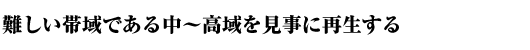 高音は音楽の幅広いジャンルで大切なニュアンスの情報として重要であるが、高域、超高域へ伸びる信号への再現性を高めるには、トゥイーターユニットに高度な性能が必要である。強調、濁り、くもりのない特性であることだが、現在の優秀機では高純度でトランジェントに優れ高解像度、広帯域が得られる製品が多くなり、中でもSignature