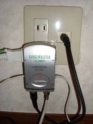 アンテナ、電話、電源にひとつですべて対応したサージバスターATC-SB7F。実際に配線してみた