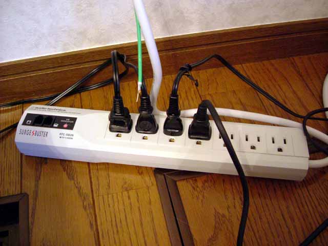 サージバスターATC-SB26を使用しているところ。ACタップと電話回線に対応している