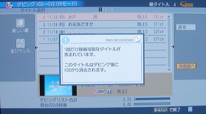 2005年末に地上デジタルの開始エリアが全国60%を超え、デジタルレコーダーでもライナップの中心がデジタル放送チューナーを搭載したモデルに移りつつある。そこで注目されるのが、録画したデジタル放送の番組をDVDに保存する際に必要となるCPRM対応の録画用DVD-RWメディアだ。今回はパイオニアのデジタル放送チューナーを搭載したDVDレコーダー「DVR-DT90」との組み合わせで、デジタル放送を録画した番組をムーブし、保存してみた。デジタル放送ではコピーワンスの制限によってデータを保存したディスクから複製も行えないため、保存を行うディスクに対してはより高い信頼性が要求される。このため、DURABISによるハードコートを採用した「DVD-RW120HCPWK」は良い選択肢となりそうだ。 |