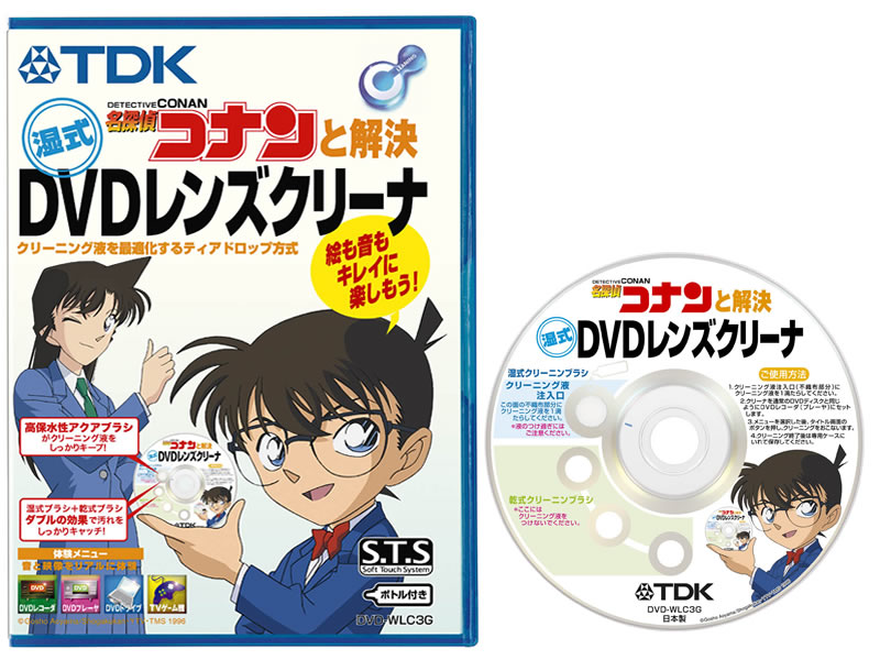 DVDへの記録で高い信頼性を保ち続けるには、ハード機器側へのメンテナンスも欠かせない。そこで注目したい製品が、VGP2006を受賞したDVDレンズクリーナー「DVD-WLC3G」だ。 この製品には「名探偵コナンと解決 DVDレンズクリーナー」という、親しみやすい商品名が付けられている。クリーナーは保水性の良い湿式アクアブラシと、3本の乾式ブラシによるダブル仕様となる。ディスクのレーベル面のクリーニング液注入口と書かれた不織布部分からクリーニング液を垂らすティアドロップ方式も業界初となる。ちなみに画面も名探偵コナンのキャラクターが登場するアニメーションのガイダンスに従い、簡単な操作でクリーニングができる。レンズクリーナーの役割などをわかりやすく解説した、1分程度の短いアニメーションや、ボーナストラックとして「博士のビートル」という5.1chのデモ用サウンドも収録されている。レンズクリーナーとしての優れた機能性はもちろんのこと、家族でDVD録画に親しめる工夫が随所に盛り込まれているところは、とても面白い製品であると実感した。