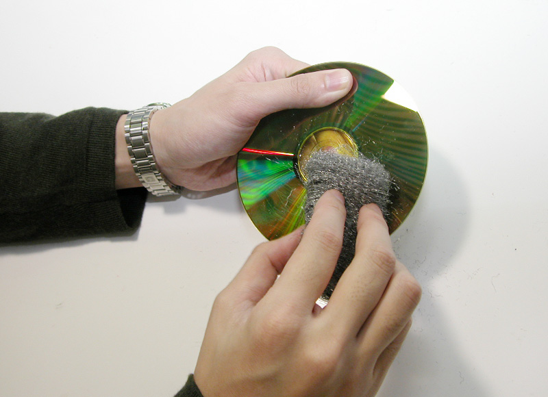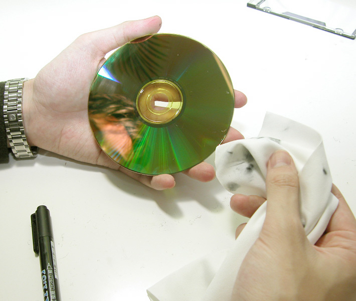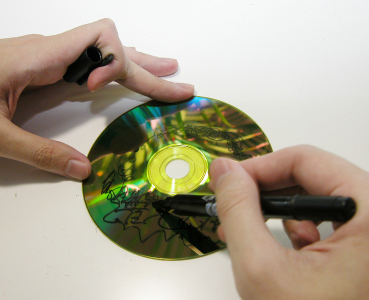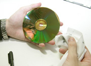 録画用のDVD-RメディアでVGP2006を受賞したのがUVガード「超硬」シリーズのビデオ録画用DVD-R「DVD-R120HCK」だ。4.7GBのビデオ録画用メディアである本製品の特徴は、DURABISコーティングを施すことによって、同社の従来製品よりも「キズ」に対して約100倍の強さを実現し、「汚れ」については30%指紋の付着量を軽減させたこと、帯電時間を1/18にすることで「ホコリ」への耐性を高めたこと、さらにUVプロテクト基板の採用により「紫外線」に約3倍の強度を持たせたことなどの特徴が挙げられる。そこで、今回は実際に製品を使って次の2つのテストを行ってみた。 続いてのテストは「汚れ」への耐性だ。ディスクに付く汚れはディスクを掴んだ際の指紋が最も大きく、その油分が読み取りエラーの原因になる。それだけでなく、汚れを拭き取る際に付いてしまうキズもエラーの原因に繋がる。今回の検証では指紋よりも更に厳しい油性マジックを使ってディスク記録面に派手に落書きを行ってみた。通常のディスクではこれで拭き取っても消えないのだが、今回は普通の布地を使ってあとかたもなく拭き取ることができた。「ホコリ」が付着しにくい特徴についてもしっかりと確認できた。