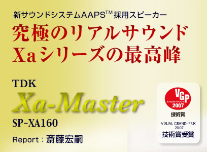 独自技術のGMMエキサイタと硬質パネル振動板の組み合わせによる、新サウンドシステムAAPSTMを採用したTDKのフラットパネルスピーカー“Xaシリーズ” に、フラグシップモデルとなる2.1chアコースティックサウンドシステム「Xa-Master」が今年、新たに加わった。今回はビジュアルグランプリ2007において栄えある「技術賞」を受賞した本機の魅力を評論家の斎藤宏嗣氏がレポートする。 |