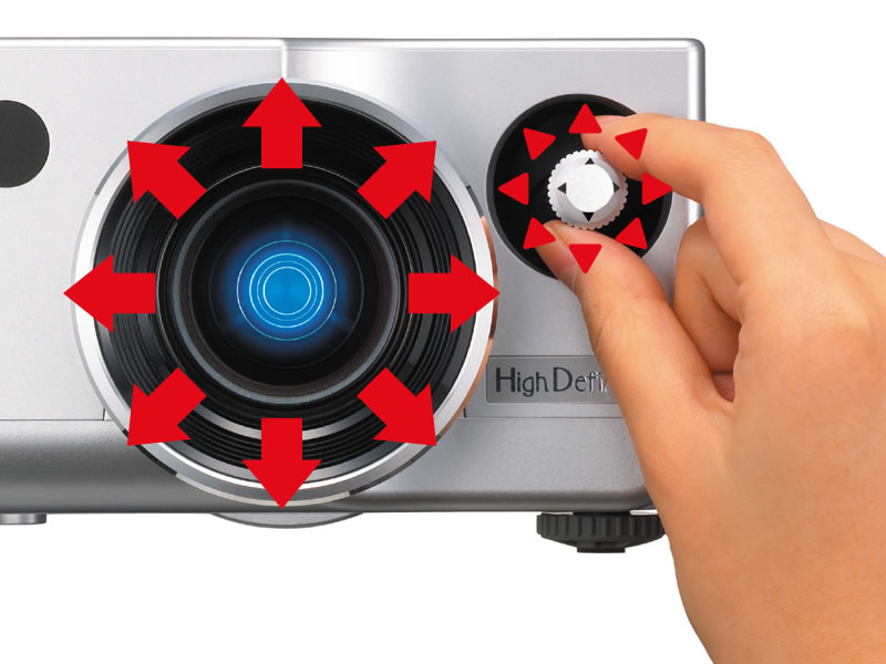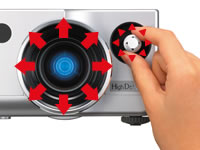 | 上下のあおりと左右のオフセット(斜め投写)ができるレンズシフトは、ジョイスティック感覚で… |