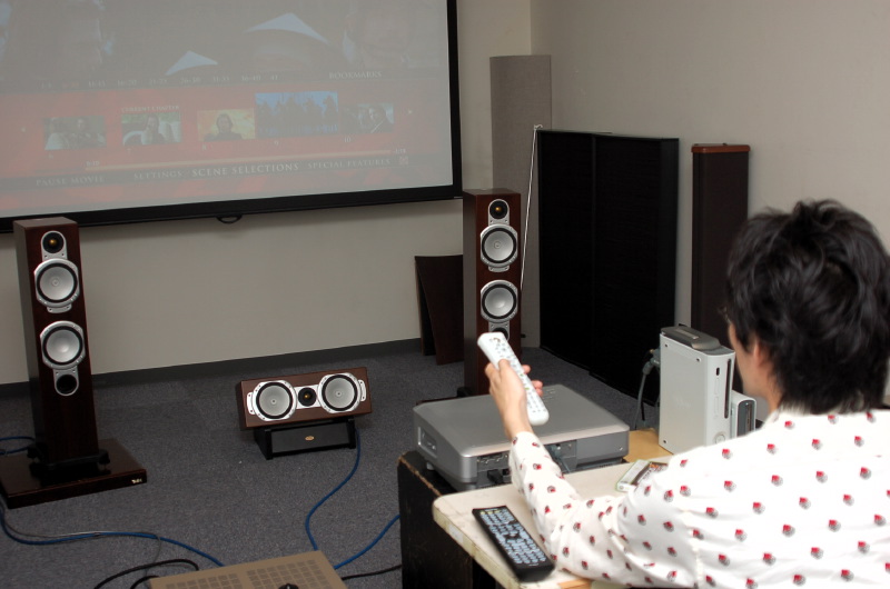| HD DVD再生を100インチスクリーン+5.1chサラウンドシステムでチェックした |