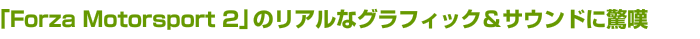 最初にプレイしたのは『Forza Motorsport 2』だ。このゲーム、いわゆるレースゲームなのだが、そのグラフィックの美しさには度肝を抜かれる。実在するスポーツカー、スポーティーカーから車種を選べるシステムはレースゲームではお馴染みだが、車種ごとのアップグレードやチューニングなどパーツのカスタマイズまでが実装されている。