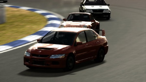 Circuit」を「2002 Mazda RX-7 Sprit R type-A」で走ってみよう。すると、シルバーのボディに夕日が差す鈍い光が、角度によって滑らかなグラデーションを描き出す。路面からの陽光の反射の具合と、地に落ちる影の滑らかさもリアルの一言。もう一つ感心したのがエンジン音のリアルさで、スタート時のエンジンの爆音はもちろん、走行中、背後に付けた敵車の位置感までしっかりと把握できる。体に響く低音の心地よさといい、この方向感の再現性といい、ぜひ大画面とサラウンドシステムで体験して欲しいタイトルだ。