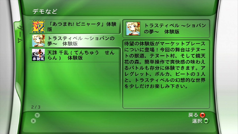 今回ゲームとしてプレイした『トラスティベル 〜ショパンの夢〜』もXbox LIVEを通してダウンロードしたもので、面白そうなゲームがあったらXbox