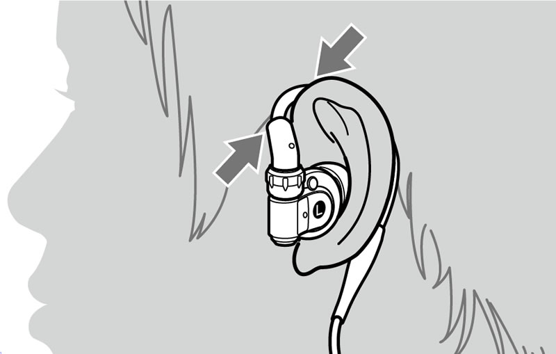 また、新開発のフレキシブルイヤーハンガーはユーザーの耳の形状に合わせて自在に曲げられ、装着できる。