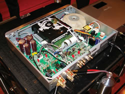 RZ-1の内部には、大型のコンデンサーやトランス類がギリギリの状態で収めされている。これは、あくまで音質にこだわるエソテリックのこだわりである |