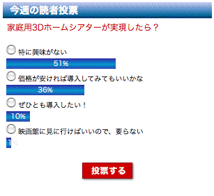 10月27日〜11月4日の読者投票:「家庭用3Dホームシアターが実現したら?」