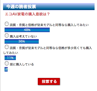 12月8日〜12月15日の読者投票:「エコAV家電の購入意欲は?」