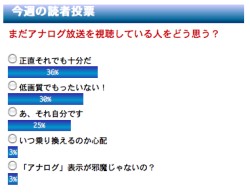 2月9日〜2月16日の読者投票:まだアナログ放送を視聴している人をどう思う?