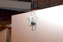ビデオカメラの操作卓は写真でもわかる通り実にコンパクトで、しかもカメラ6台分の操作を一人で行うという。オペレーターが一人だけというのは予想外だったが、装置を見れば納得がいく。右側のボタンでカメラを選び、ジョイスティックでズーミングとパンニングを行う操作は、慣れればたしかに一人でこなせそうだ。中央の小さなボタンには特定のカメラポジションを記憶できるため、オーケストラの場合はコンサートマスター、ビオラ、フルートといった具合に大体の位置を記憶させておくことにより、カメラが目的の位置を狙ってほぼ一瞬で動く。記憶させるカメラ位置はオーケストラの編成に合わせて自在に変更できるようになっており、大体の位置はリハーサル時に決めておくのだという。