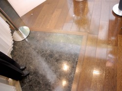 まず向かったのは、3階にあるコンシェルジュルーム。こちらにはリビング・ダイニングと書斎スペースがそれぞれ用意されている。部屋の入口が玄関風になっていたり、床に鋲を打って広さの目安(4点の正方形で半畳分)にしていたりと、細かい配慮も心憎い。