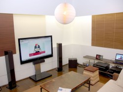 なお、リビングスペースに用意されている機材はテレビに“BRAVIA”「KDL-52ZX5」、BDレコーダーが「BDZ-RX100」、AVアンプに「TA-DA5500ES」。テレビ用のスピーカーは「SS-F7700」「SS-CN7700」「SS-SR7700」を使用する。また、部屋の中には“Sountina”「NSA-PF1」も置かれており、希望すればこちらを試聴するといったことも可能だ。