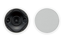 スピーカーは取付穴サイズ125mm/200mm/防滴&1台でステレオ再生可能な200mmの3種類。こちらの特徴は「迷惑レス」。建物の構造体に不要な振動を伝わりにくくするISOマウント技術と、背面カバーを二重にしたダブルバックチャンバー構造を組み合わせて、振動や天井裏への音もれなどの迷惑要因を低減することができるのです(同様の他製品と比較するとなんと周波数帯域によって最大13分の1まで低減できるそう)。